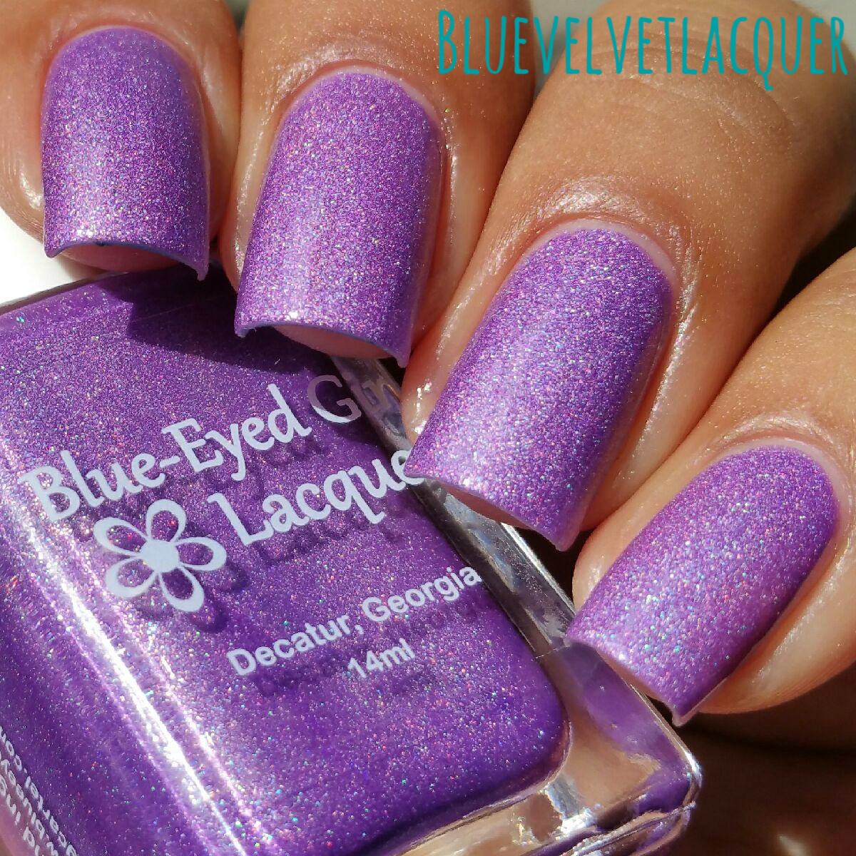 Bikinis & Flip Flops by Blue Eyed Girl Lacquer is a bright purple creme with a matte finish and holo shimmer throughout. I wore 2 coats with a top coat.